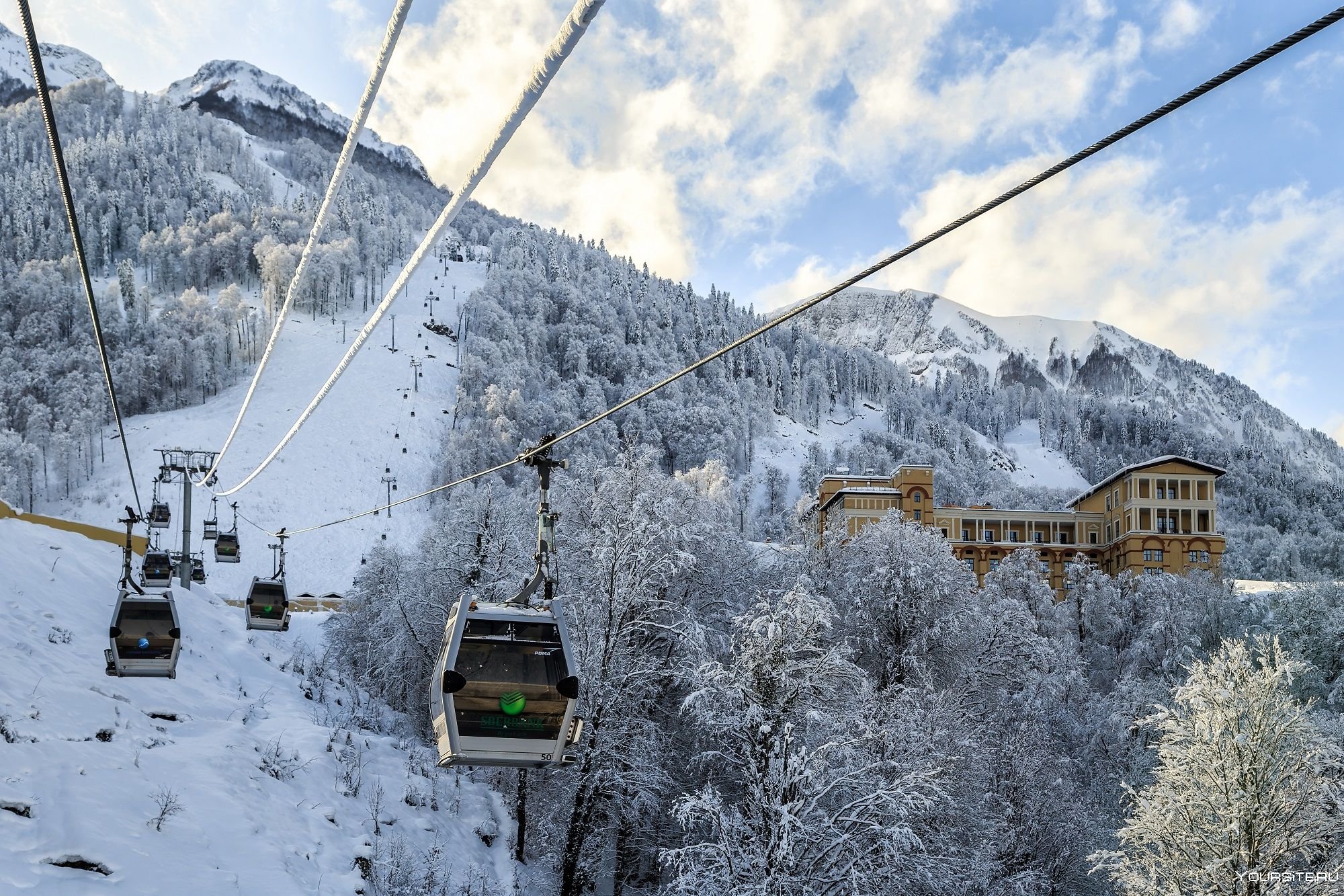 • Подняться на трех канатных дорогах закрытого типа на самую вершину курорта - 2200 метров над уровнем моря. Сверху открывается такой потрясающий вид, что дух захватывает. Билеты на канатную дорогу приобретаются отдельно от экскурсии при желании. Но у вас есть возможность купить их без очереди по кассовым ценам у гида, так как мы являемся официальными партнерами.
